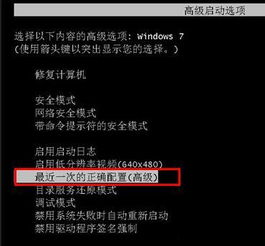 系统引导失败:在开机时按F8进入安全模式,选择以最后一次正确配置启动电脑。