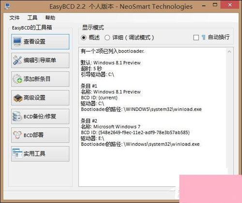 以下以EasyBCD为例,介绍如何使用第三方多系统引导管理工具: