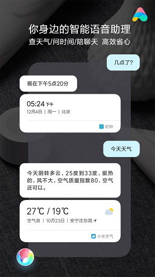 天气预报:出门前,你想要知道今天的天气情况,只需问小爱同学“今天天气怎么样”,它就会告诉你最新的天气信息。