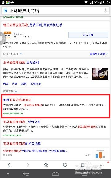 在浏览器的搜索框里,输入“亚马逊APP下载”,然后点击搜索。瞬间,你会看到一大堆关于亚马逊APP下载的信息跳出来。